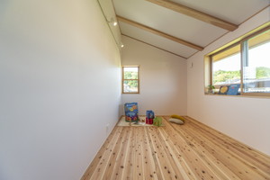 子供室は壁と天井の色を変えていますが、どちらもミヤワキホームの標準である和紙を使用しています。(写真ではわかりにくいですが、、)