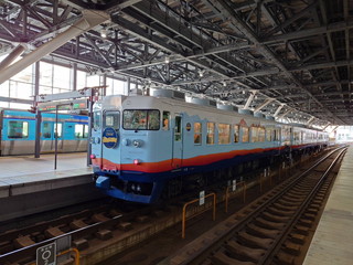 先日、富山駅のホームで初めて あいの風とやま鉄道の観光列車「一万三千尺物語」を見ました(*´▽`*)