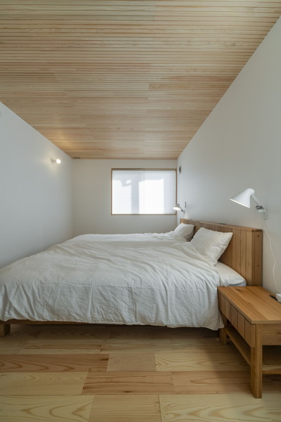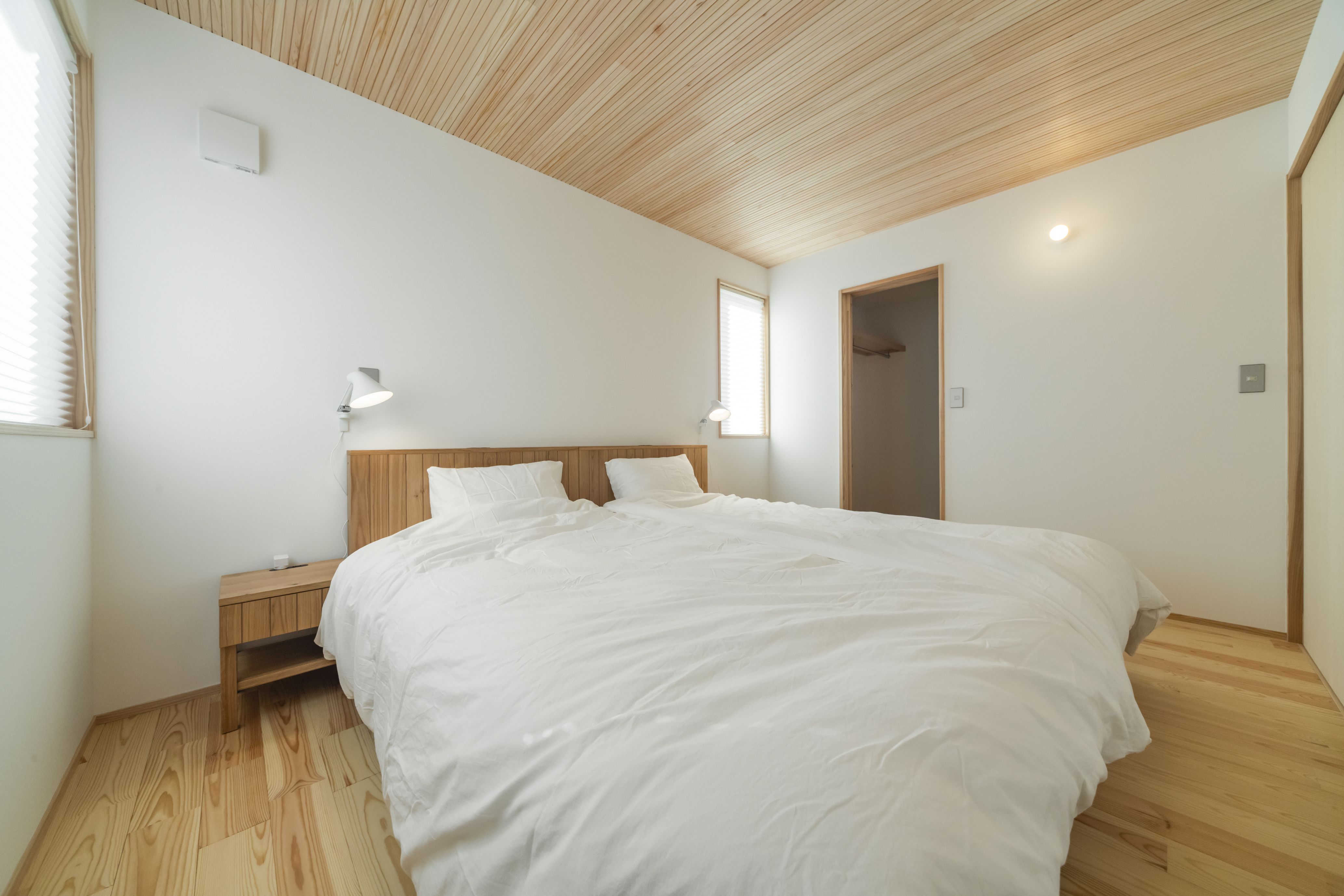 桧板張りの天井がリラックスさせ安眠に導きます。枕元の読書灯が眠る前のひと時を豊かなものにしてくれます。