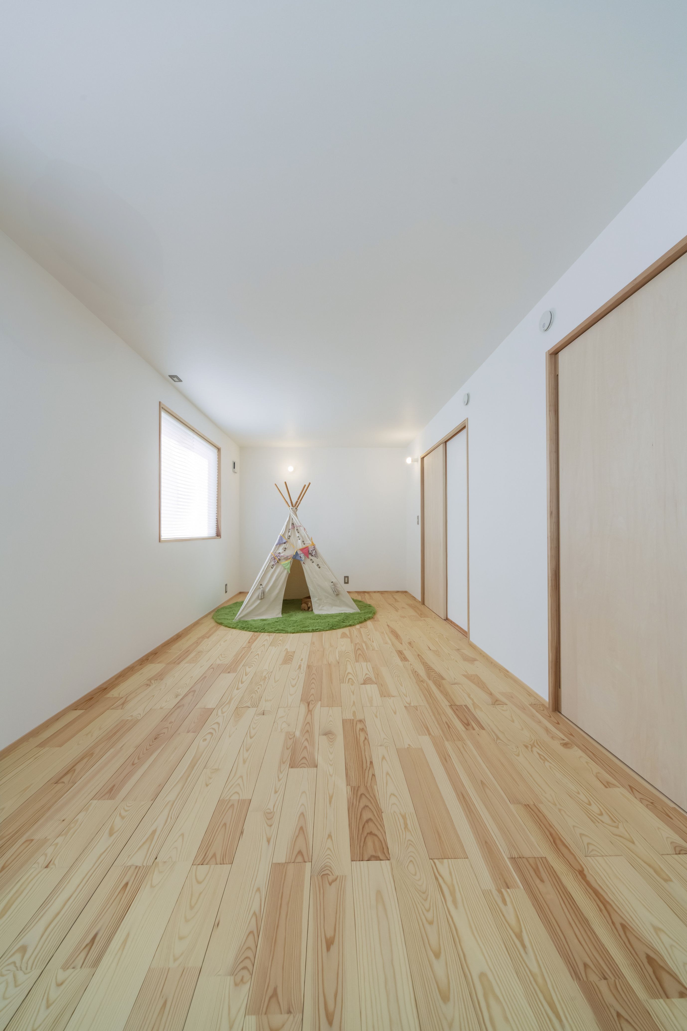 子供部屋は、将来仕切れるように入り口を2か所設けました。明るく使いやすいシンプルな作りです。